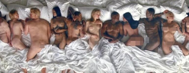 En el controversial video del rapero Kanye West para su canción 'Famous', se observa varias celebridades completamente desnudas en una cama.