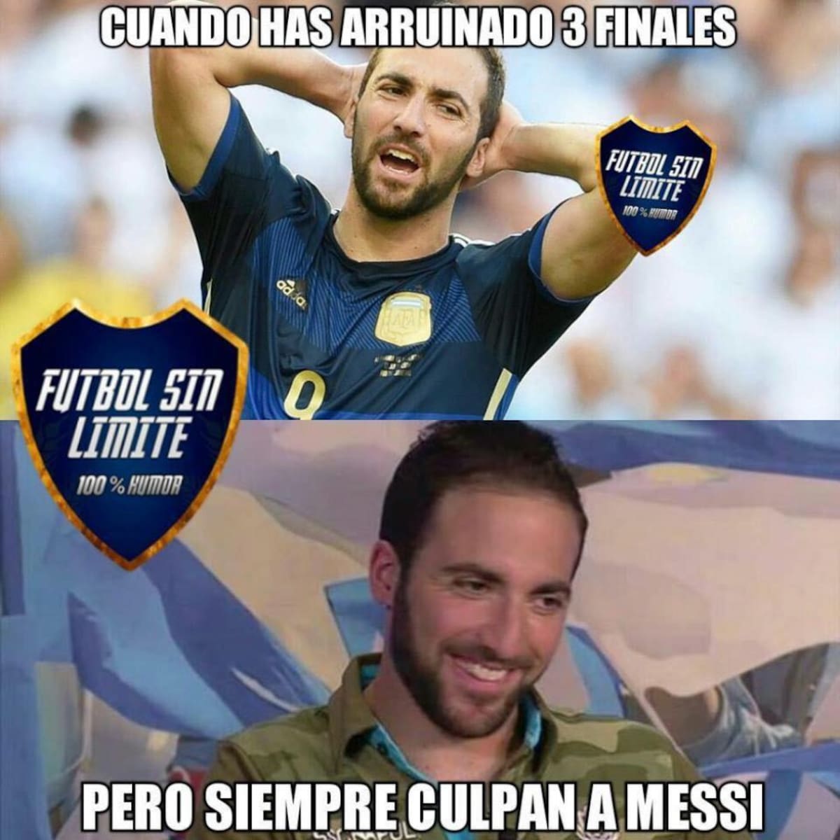 Gonzálo Higuain otra de las figuras víctimas de los memes. El jugador argentino erró la opción más clara del partido.