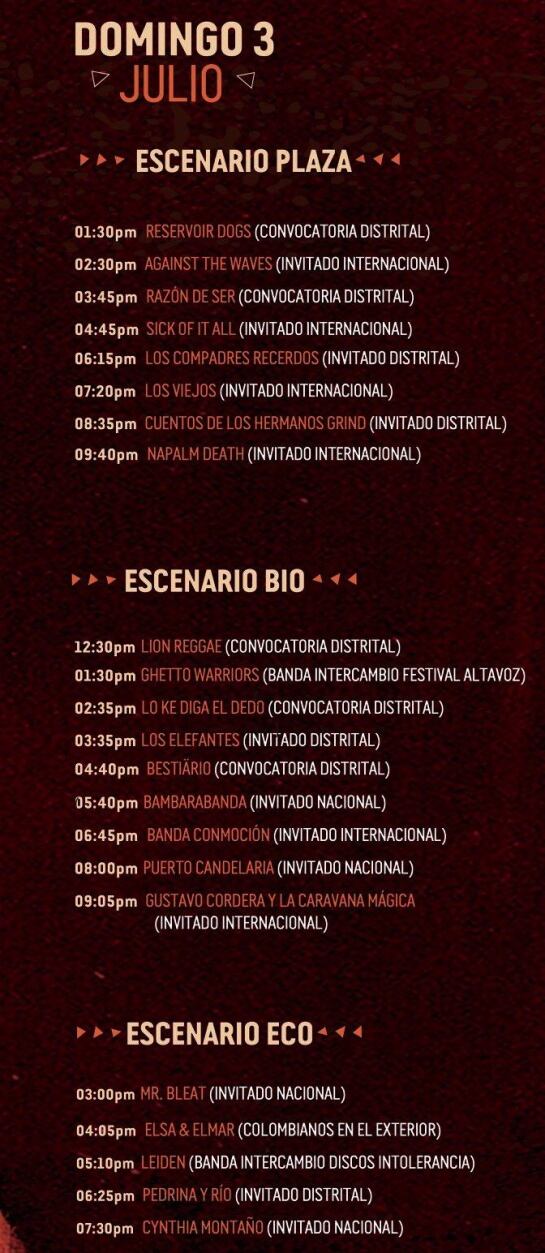 Conozca la programación del 3 de julio del festival gratuito y al aire libre más grande de Latinoamérica.