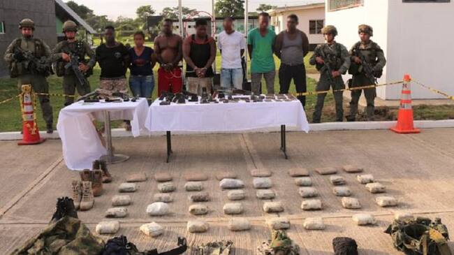 Además de las seis capturas, fueron incautados en zona rural de Riosucio dos fusiles AK 47 calibre 5.56 con seis proveedores, cuatro pistolas, dos de ellas conocidas como ‘five seven’, tres granadas de fragmentación, 443 cartuchos de diferente calibre; de igual forma material explosivo como cordón detonante, anfo y detonadores eléctricos, además de equipos electrónicos como radios de comunicación, teléfonos celulares, memorias USB e implementos militares.
