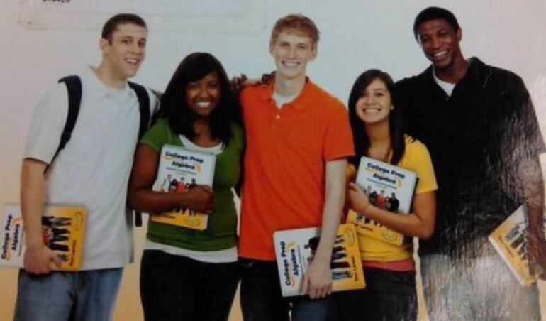 Todo ocurrió cuando una joven en Estados Unidos notó algo extraño en la portada de su libro de algebra: “College Prep Algebra”. No es solamente un grupo de jóvenes que aparecen en la portada de un libro.