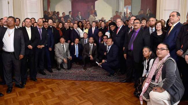 El presidente Juan Manuel Santos invitó a sacerdotes, pastores y lideres espirituales a apoyar el proceso, ellos respondieron con una oración.