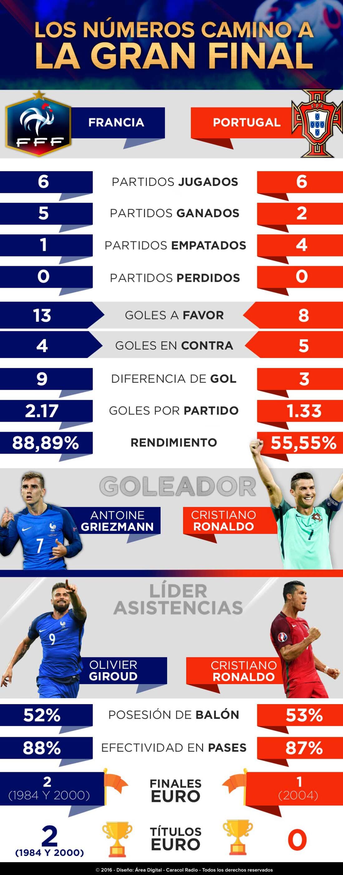 Los números de Francia y Portugal camino a la gran final