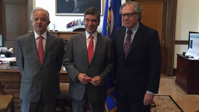 Al término de una gira de tres días por Washington, Estados Unidos, el alto comisionado para el Posconflicto, Rafael Pardo, se reunió con el secretario general de la Organización de los Estados Americanos (OEA), Luis Almagro, para dialogar de los avances en el proceso de paz y fortalecer el acompañamiento en el posconflicto.