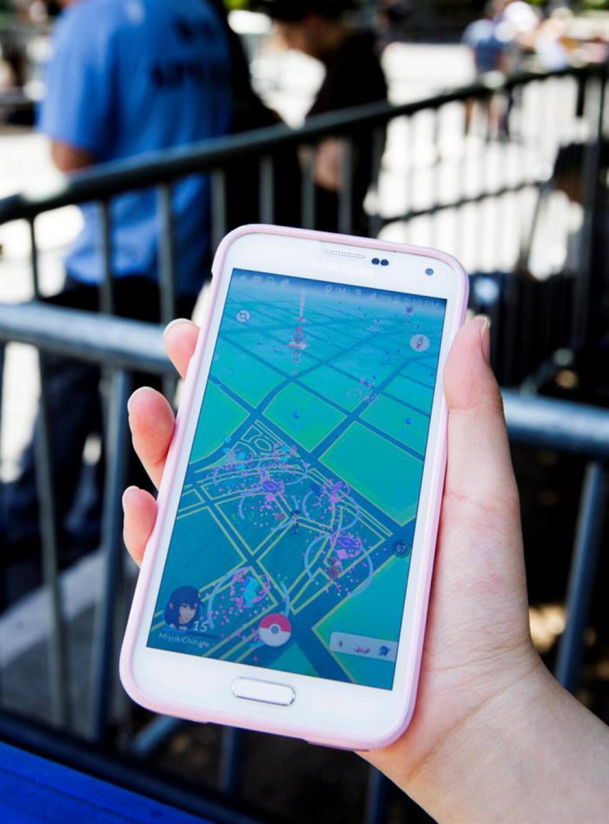 Detalle del videojuego 'Pokemon Go' en un teléfono inteligente en Union Square en Nueva York (EE.UU.).