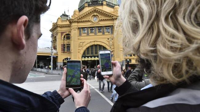 Foto 7 de 14Unos estudiantes prueban el nuevo juego "Pokémon Go" en su móvil en Melbourne, Victoria, Australia.