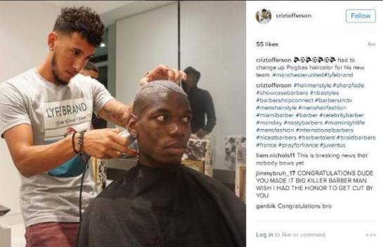 “Cambiando el color de cabello de Pogba para su nuevo equipo #manchesterunited…”, traduce el texto que acompañaba la publicación que tras generar revuelo fue retirada de la red social de Criztofferson; sin embargo en la cuenta del estilista aún permanecen algunas imágenes que dan cuenta de la visita del deportista al peluquero.