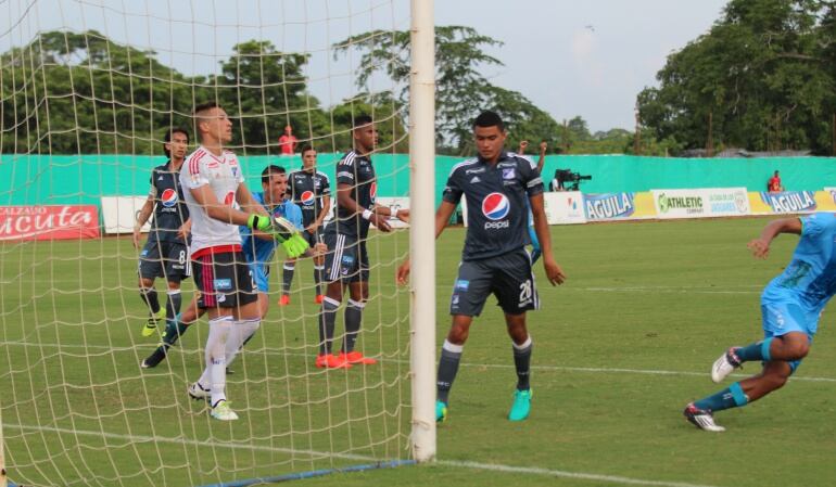 Pero Millonarios también respondió y atacó con Macalister Silva, el más incisivo y desequilibrante con remates de media distancia y desbordes por los costados.