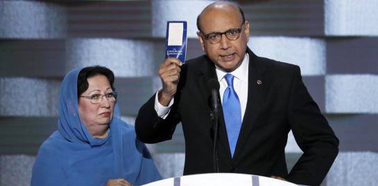 Khizr Khan, padre del soldado Humayun S. M. Khan muerto en combate en Irak, dio un duro discurso en contra de Trump y de sus propuestas para vetar a los seguidores del islam en Estados Unidos.
