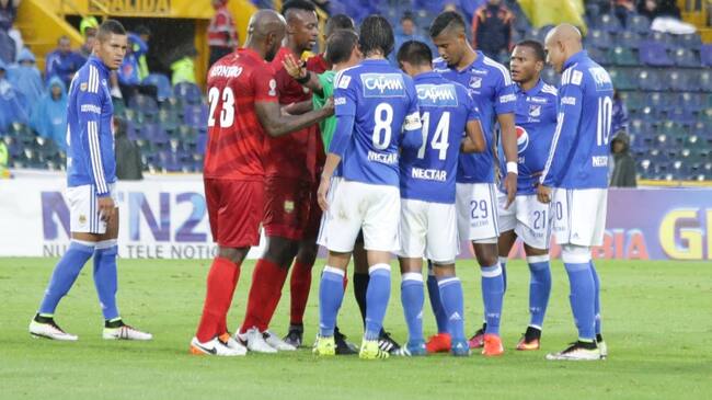 Cuando el juego ya estaba próximo a finalizar, a los 92 minutos, Lewis Ochoa vio la tarjeta roja por agredir a Francisco Rodríguez sin la pelota, dicha acción dio cierre a un juego que aumenta la preocupación en los hinchas de Millonarios, que no conocen la victoria desde hace cuatro encuentros, sumando tres empates y una derrota.