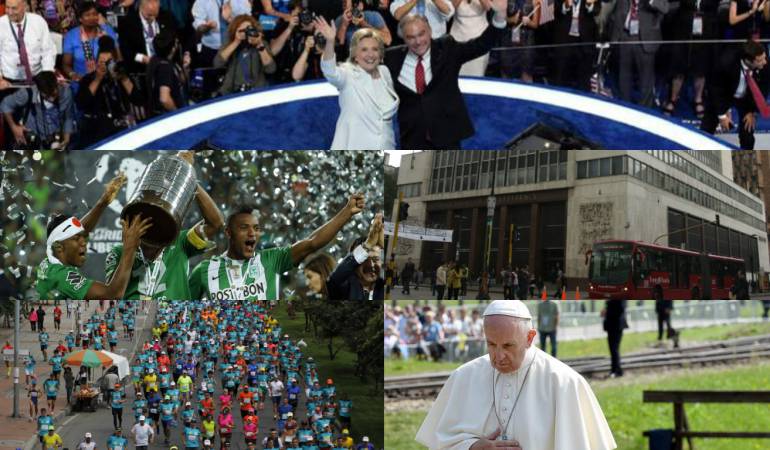 Visita del papa a Colombia, Convención Demócrata, aumento en la tasa de interés del Banco de la República, Media Maratón en Bogotá y Atlético Nacional campeón de los Libertadores.