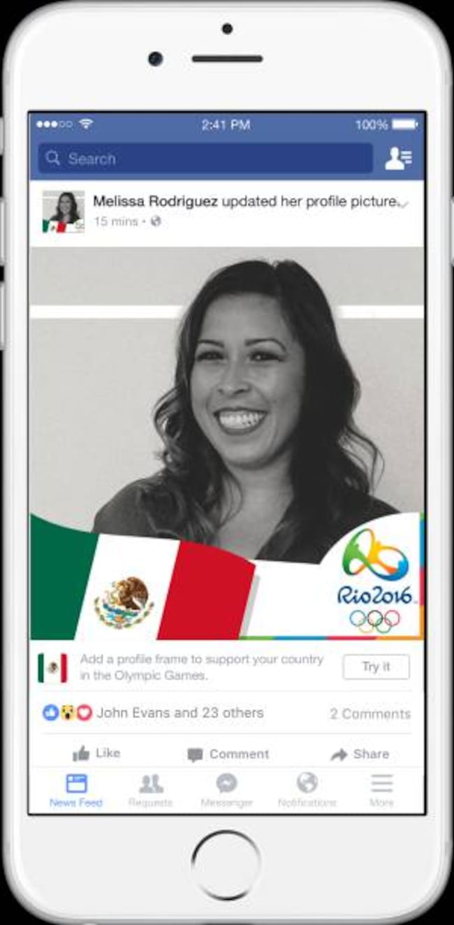 Ahora estamos en temporada de los juegos Olímpicos que se realizarán en Río, por ello Facebook se puso en onda y ofrecerá diferentes marcos conmemorativos de cada país al cual usted pertenezca o simplemente quiera apoyar.