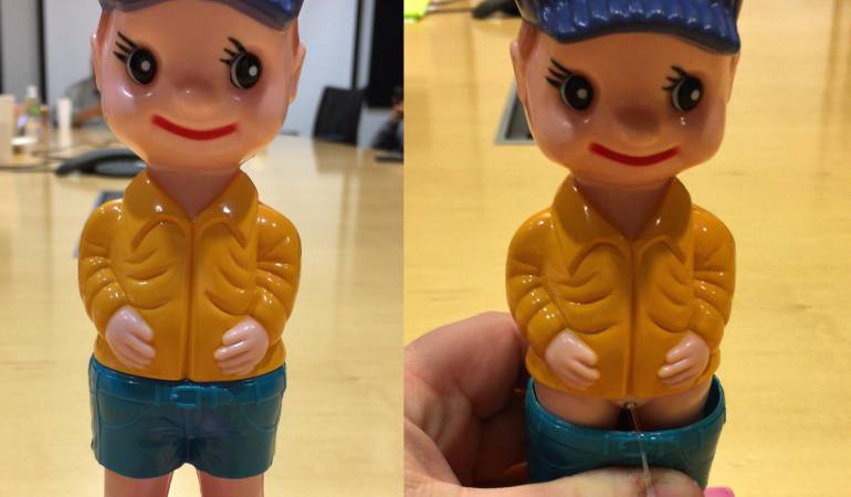 El muñeco de la parrilla es considerado por los clientes, algo gracioso, por su forma de ‘orinar’, pero para esta pareja no fue divertido.