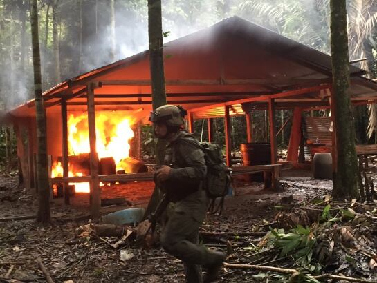 Sin embargo, no corrieron con suerte. 120 hombres Jungla de la Policía Antinarcóticos apoyados con más de siete aviones de la Fuerza Aérea Colombiana desembarcaron en la zona y arrasaron con lo que encontraron.