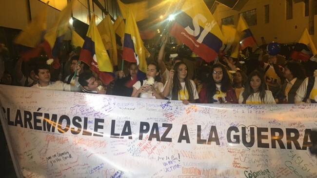 Promotores de Sí al plebiscito protestan afuera de cumbre uribista