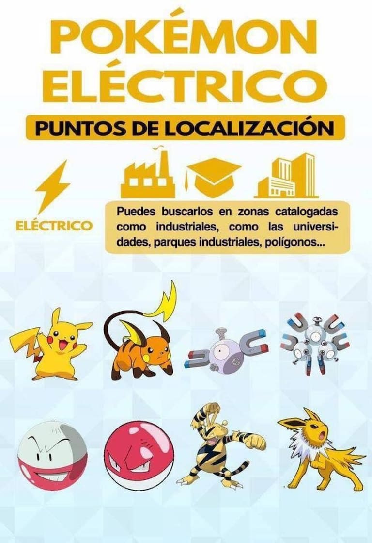 Los pokémones tipo eléctricos solo aparecen en lugares catalogados como industriales de cada ciudad.