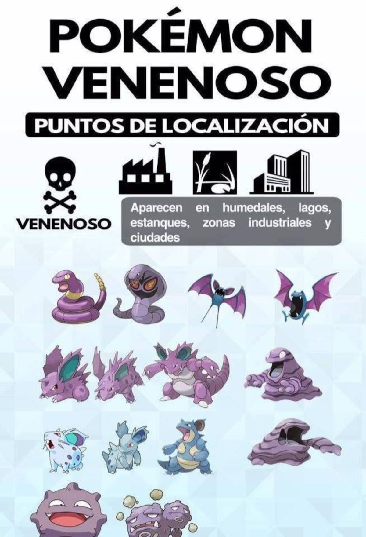 Los pokémones tipo venenoso solo aparecen en lugares como humedales y estanques de cada ciudad.