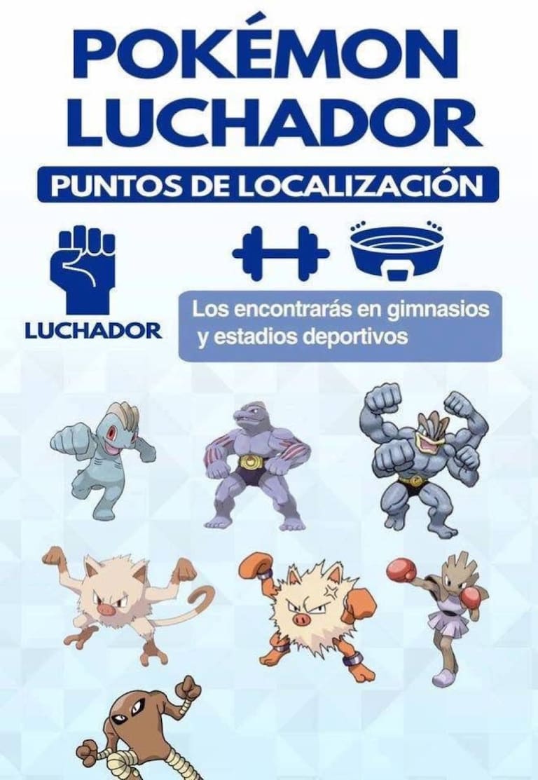 Los pokémones tipo luchador solo aparecen en lugares como gimnasios y estados deportivos de cada ciudad.