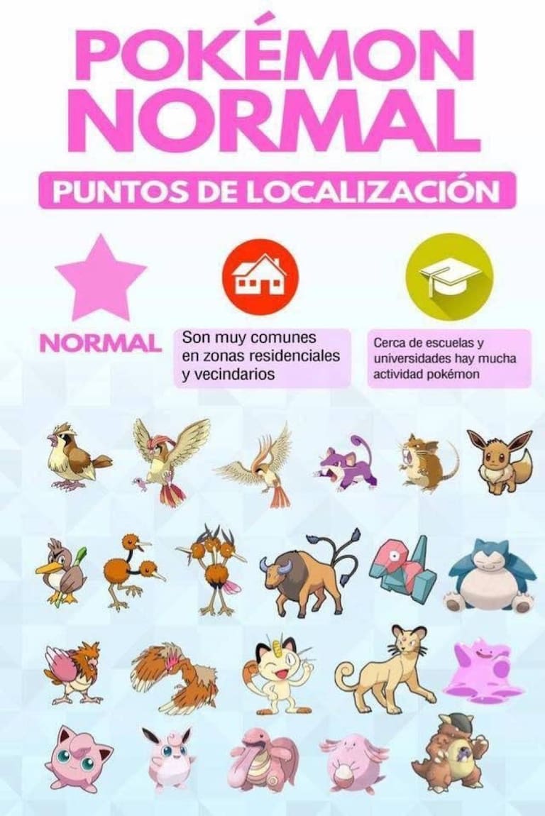 Los pokémones tipo normal solo aparecen en lugares residenciales y cerca a las universidades de cada ciudad.