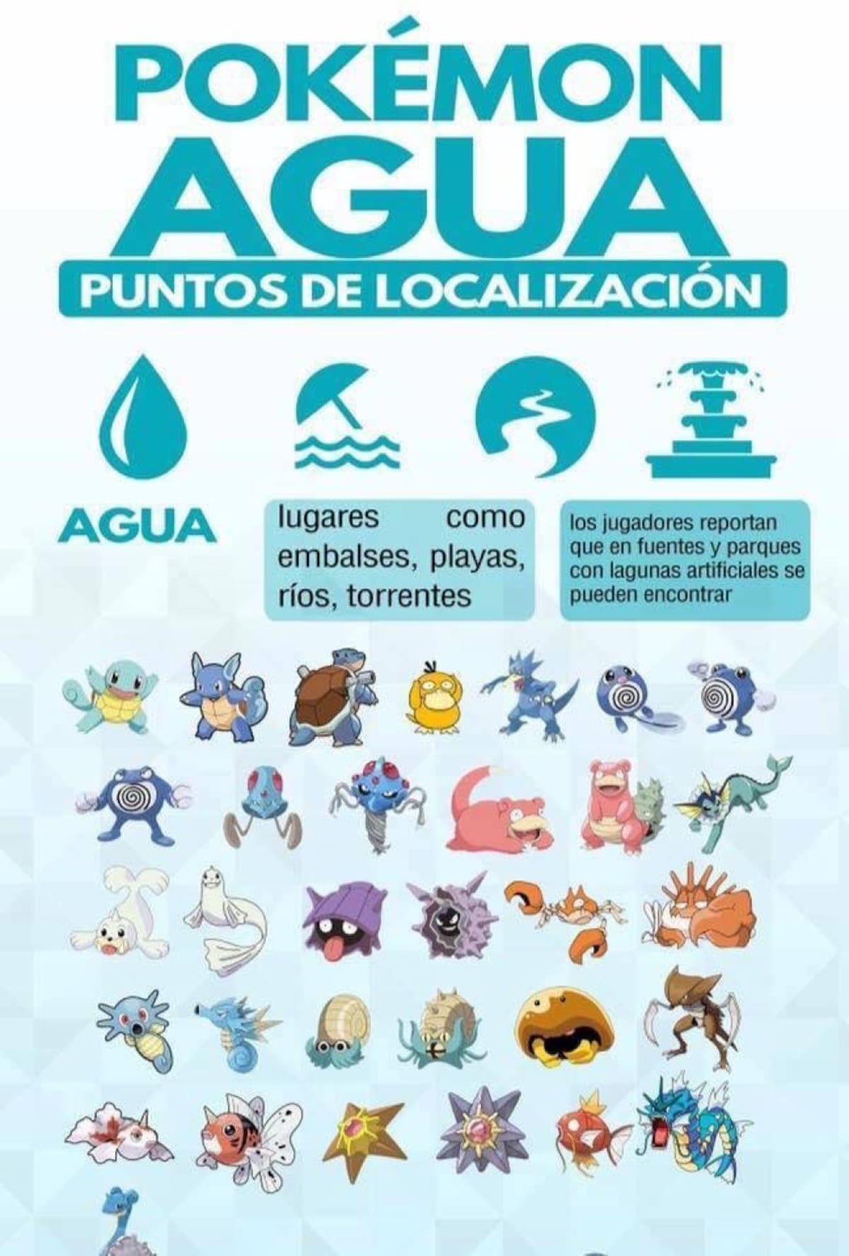 Los pokémones tipo agua solo aparecen en lugares como embalses, playas, ríos y torrentes de cada ciudad.