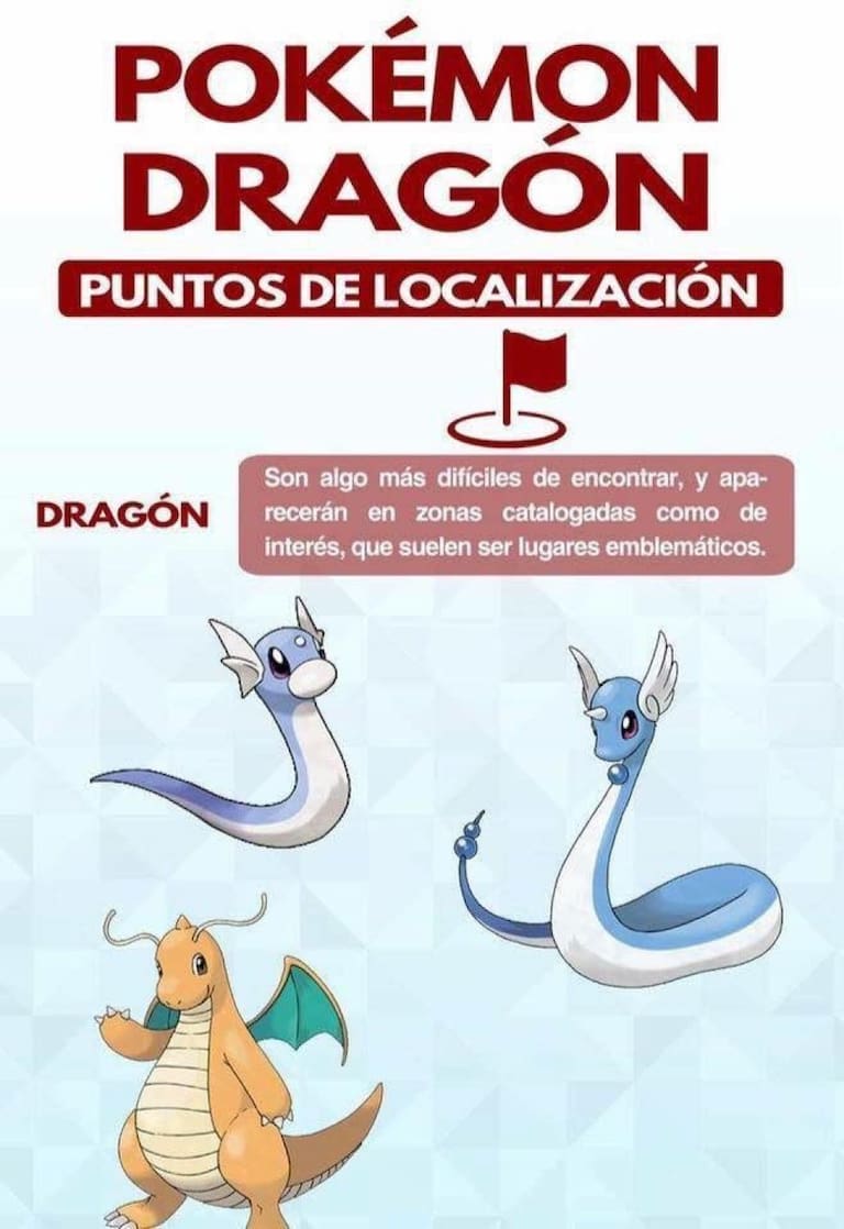 Los pokémones tipo dragón solo aparecen en lugares emblemáticos de cada ciudad.