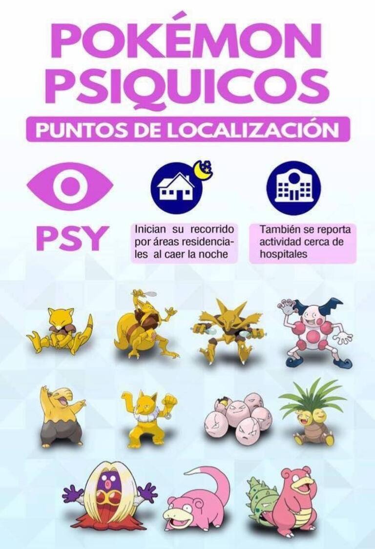 Los pokémones tipo psiquicos solo aparecen en lugares como hospitales de cada ciudad.