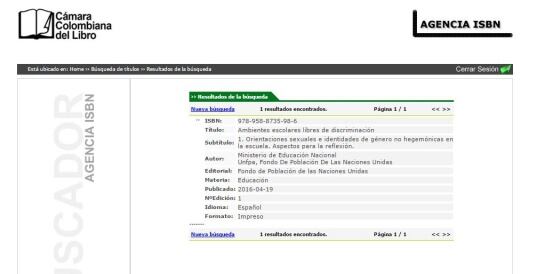 En la Cámara Colombiana del Libro aparece que fue registrado el 19 de abril, que cuenta con código ISBN, que es un identificador internacional de libros que están a disposición del público, y que como autores figuran el “ministerio de Educación Nacional, Unfpa, Fondo De Población De Las Naciones Unidas”. Este es el registro.