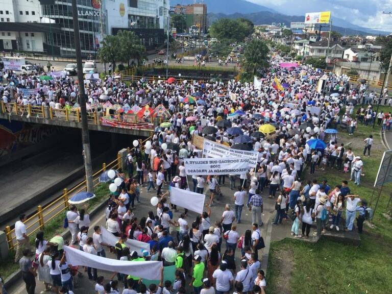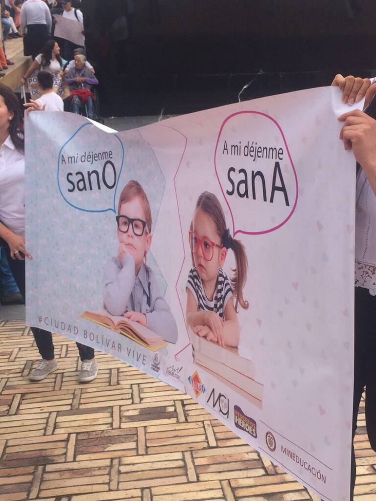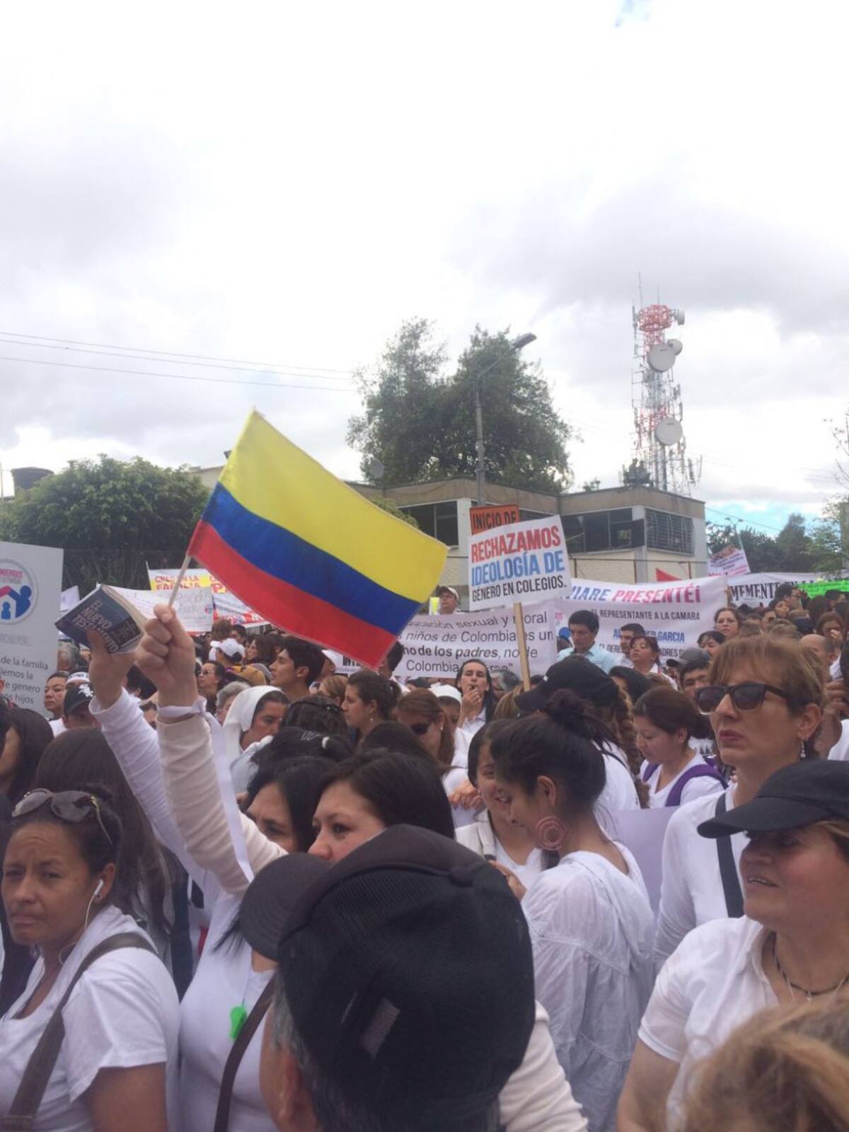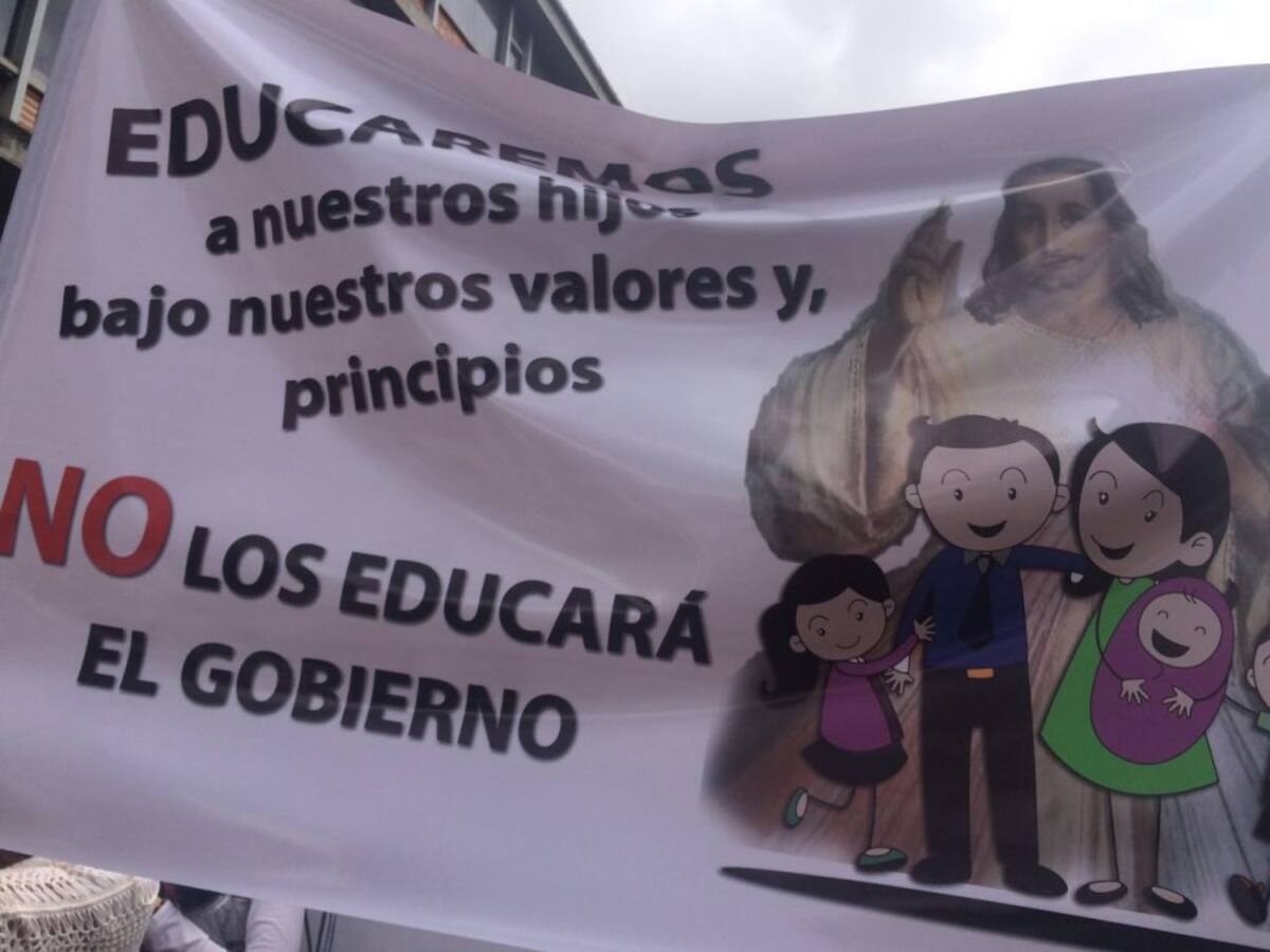 Padres de familia en toda Colombia protestan contra una supuesta cartilla de orientación sexual impuesta por el Ministerio de Educación.