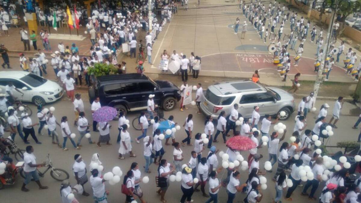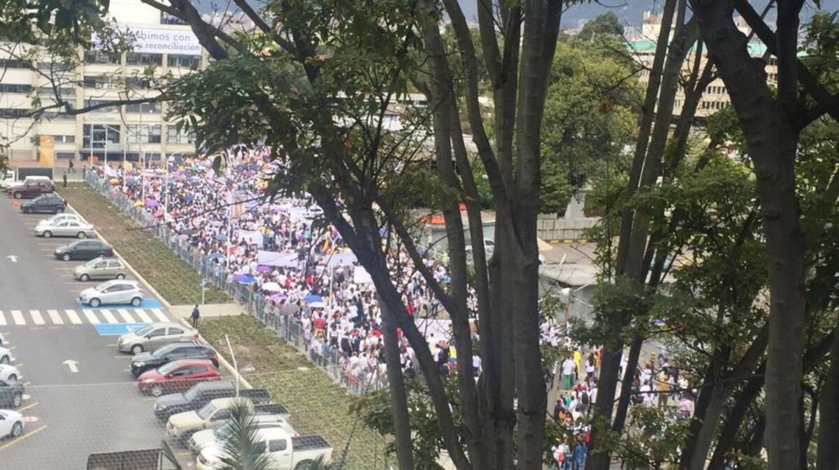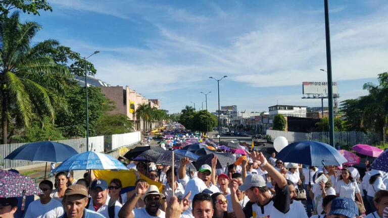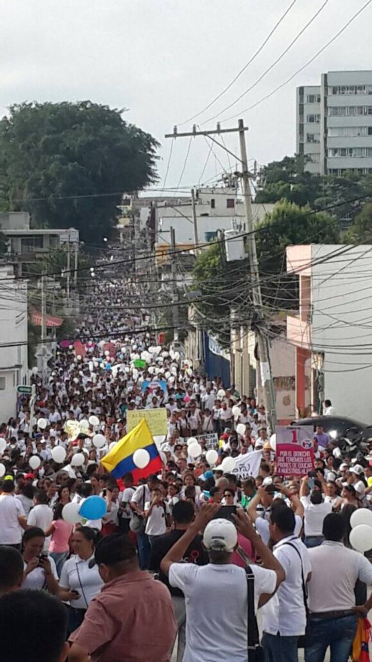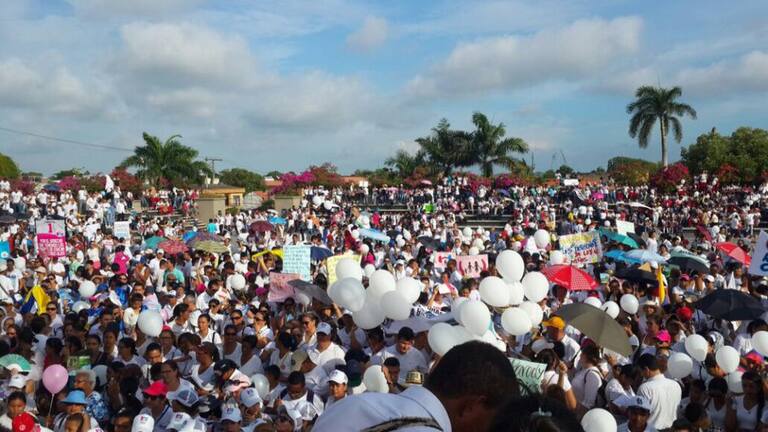 Padres de familia en toda Colombia protestan contra una supuesta cartilla de orientación sexual impuesta por el Ministerio de Educación.
