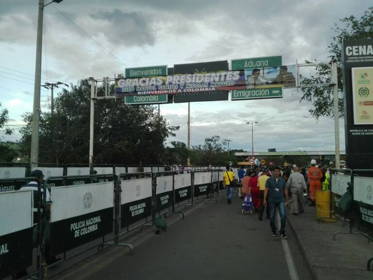 Bajo estrictas medidas de seguridad del lado colombiano, militares y policías, se apostaron en el corregimiento de La Parada para acompañar el proceso de salida e ingreso de los colombianos y venezolanos que empezaron a moverse hoy por el eje limítrofe.