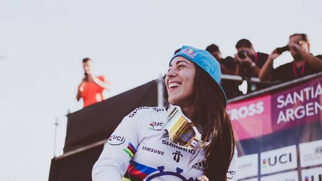 La bicampeona olímpica, de 24 años no solo cautiva a los colombianos por su gran talento con la bicicleta, sino también por su belleza.