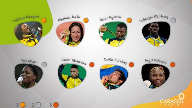 Sumado a Pajón, Ibargüen y Figueroa, Yuri Alvear en el judo y Yuberjen Martínez en el boxeo se quedaron con la plata; mientras que Ingrit Valencia en el boxeo, Carlos Ramírez en el BMX y Luis Javier Mosquera en el levantamiento de pesas alcanzaron el bronce.