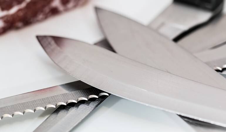 Los cuchillos median aproximadamente siete pulgadas de largo y algunos estaban oxidados o doblados hacia arriba, provocando sangrados.