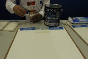 El portafolio entero de novedades que se ofrecen incluye además una pintura antibacterial que aguanta lavados con hipoclorito y manchas de yodo, especialmente diseñado para hospitales, restaurantes, veterinarias, laboratorios y centros de procesamiento de alimentos. Además, otra cosa que llama la atención es el pegante sin polvo, que se usa para adherir revestimientos pero que su valor agregado va en dirección a proteger la salud pulmonar de los obreros.