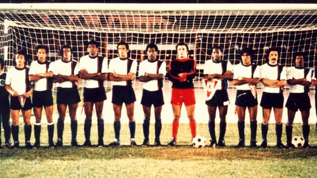 Parados de izq a der: William Ospina, Héctor Fabio Sarmiento, Armando “Mudo” Torres, Luis Eduardo Reyes, Rodolfo Fucenecco, Wilson Américo “Niño” Quiñones, Hugo Daniel Tocalli, Gilberto Cuero, Jorge Ramón. “Fiera” Cáceres, Sopich Dussan, Wulfrand Cervantes.