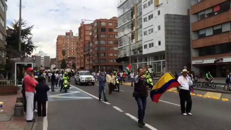 La caravana solidaria avanzó por la carrera sétima hasta la calle 72, se devolvió por la carrera 13 hasta el parque del Lurdes, para llegar hasta el Centro de Alto Rendimiento, en el occidente de Bogotá.