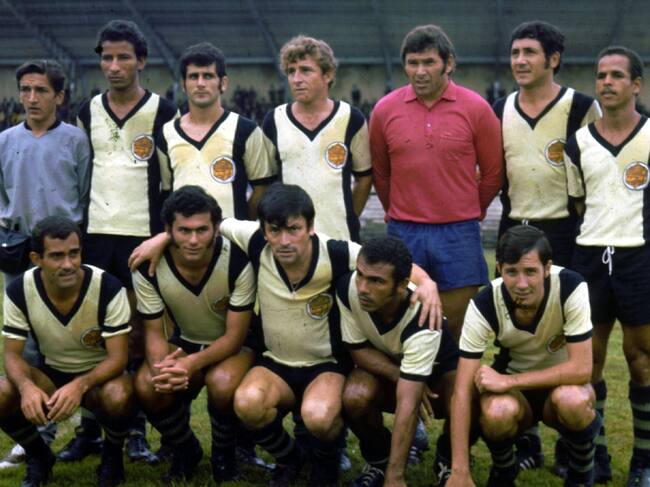 Parados de izq a der: Enrique Pérez " Pepo", Félix "Pitula" Martínez, Álvaro "Champión" Suárez, Darío Hoyos, Osvaldo Ayala, Luis Carlos Contini, Walter Tapias. Abajo en el mismo orden: Uriel Cadavid, José Bernardo, Oscar Desiderio, Antonio Páez, Eduardo Ghilio.