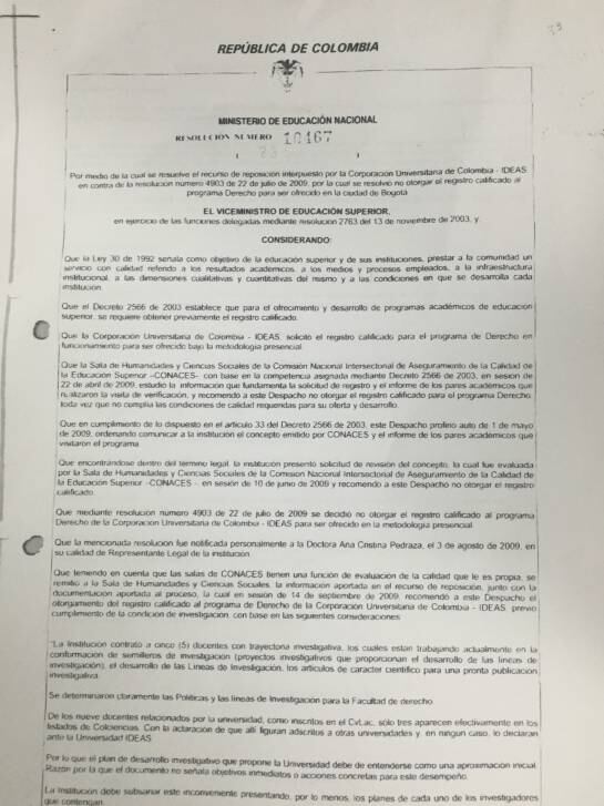 Previamente el ministro de Educación encargado, Francisco Cardona, denunció que estarían “vendiendo títulos” del programa de derecho en la cárcel La Picota a 22 personas, de las cuales 11 hacen parte del proceso de Justicia y paz, sin la autorización del ministerio Educación.