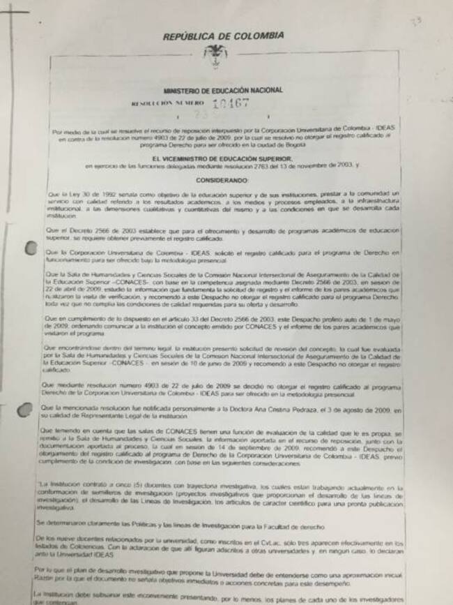 El vicerrector Fonseca aseguró que esta entidad educativa no incurre en irregularidades y está calificada por la resolución número: 101467 del año 2009, para ofrecer el programa de Derecho.