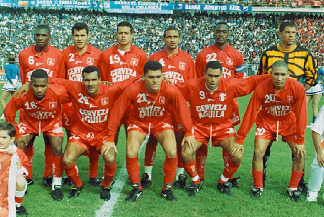 Parados de izq a der: Arley Dinas, Wilmer Ortegón, William Zapata, Fuad Maziri, Carlos Asprilla, Oscar Córdoba. Abajo en el mismo orden: Jerson González, James "Guama" Cardona, Carlos Gutiérrez, Ricardo "Gato" Pérez, Henry Zambrano.