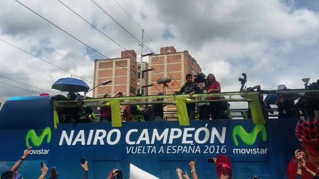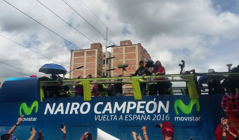 Acompañados de un típico sol radiante de domingo sol radiante, los capitalinos recibieron al campeón de la vuelta a España Nairo Quintana, con fervor y pasión, le hicieron saber al campeón del Giro de Italia y dos veces subcampeón del Tour de Francia, que en su país tiene incondicionales seguidores que con banderas de Colombia y camisetas rojas le ofrecieron un sentido homenaje al nuevo héroe del ciclismo nacional.