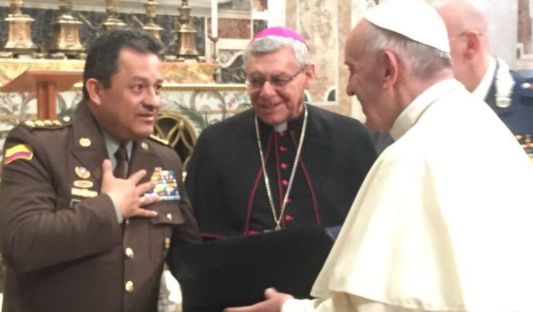 Este fin de semana el papa Francisco recibió en El Vaticano al director de la Policía Nacional, general Jorge Nieto, quien llegó con parte de su comitiva a la santa sede, es la primera vez en la historia que un director de la Policía Nacional participa de la eucaristía con el Santo Padre.