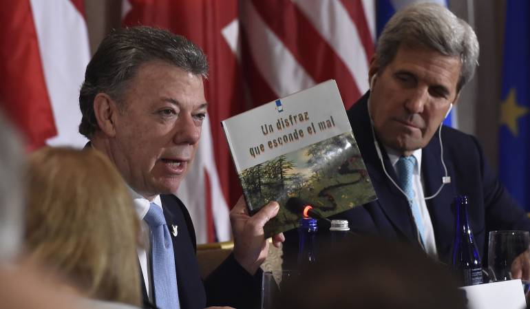 Tras una intensa gira por los Estados Unidos, el presidente, Juan Manuel Santos se reunió este domingo con el secretario de Estado de EE.UU, Jhon Kerry, quien confirmó su asistencia a los actos de firma de la paz, en la ciudad de Cartagena el próximo 26 de septiembre.