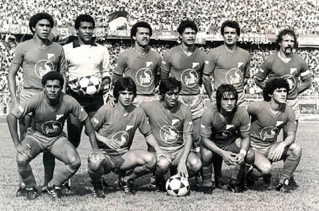 Parados de izq a der: Jorge Olaechea, Luis Octavio Gómez, Pablo Jaramillo, Gildardo Gómez, Rafael Villlazán, Álvaro "Polaco" Escobar. Abajo en el mismo orden: Iván Darío Castañeda, Franco Navarro, Eduardo, Malásquez, Carlos Alberto "Fiera" Gutiérrez, Leonel Álvarez.