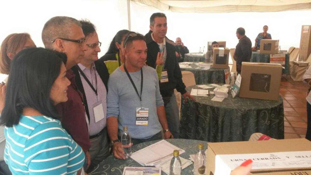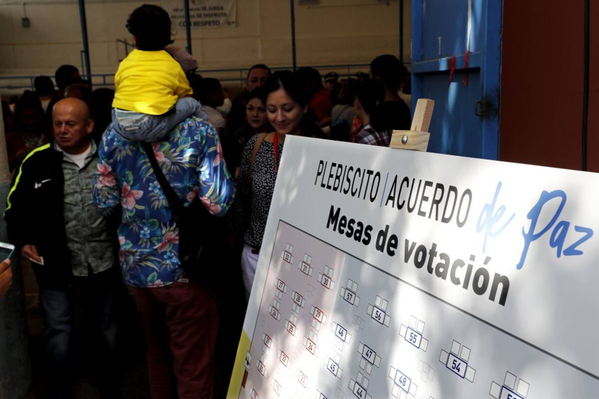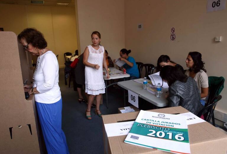 Ciudadanos colombianos en Venezuela inician el proceso de votación por el plebiscito.