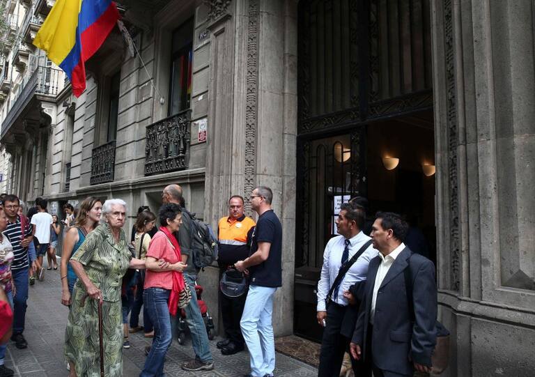 Ciudadanos colombianos vota en el consulado de Colombia en Barcelona.