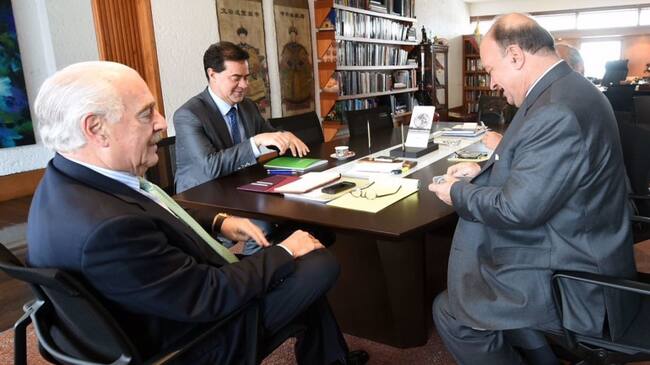 Durante más de una hora el ministro de Defensa Luis Carlos Villegas y Frank Pearl se reunieron con Pastrana y su ex comisionado de paz Camilo Gómez y anunciaron que este fin de semana empiezan a trabajar con un grupo de juristas y economistas para presentar un informe de temas a tratar con la delegación de las Farc.