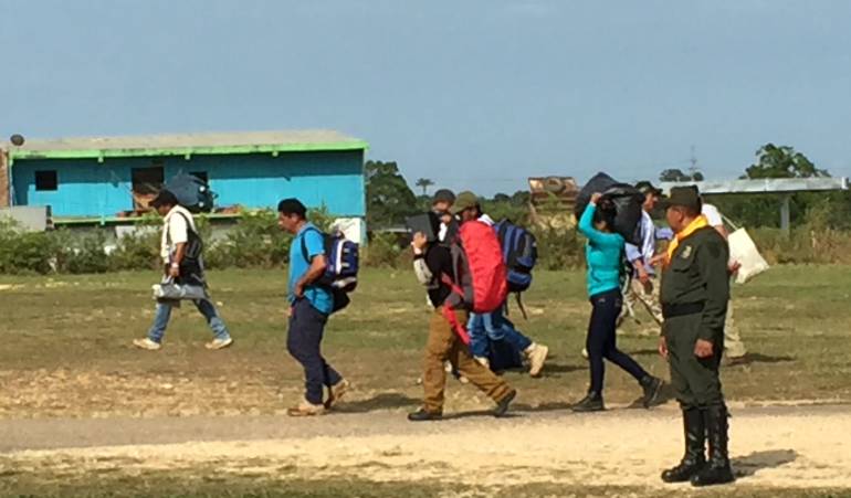 Cinco camionetas repletas de guerrilla arribaron hasta el aeropuerto Javier Núñez de La Macarena, Meta, donde los esperaban delegados del Comité Internacional de la Cruz Roja y uniformados de la Policía que se entrenaron para cuidar a la subversión en zonas veredales.