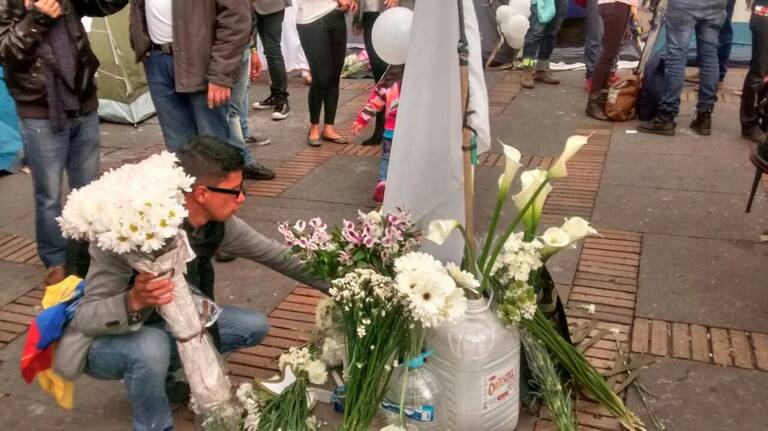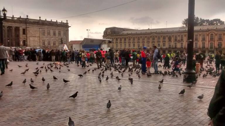 Los campistas permanecen en la céntrica plaza de Bolívar en Bogotá.