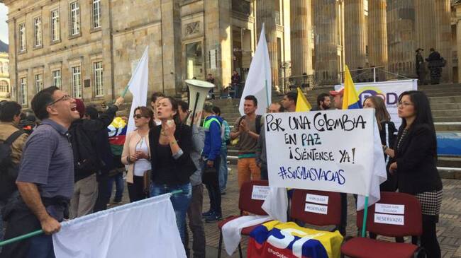 Los manifestantes piden que Gobierno y voceros del Sí se pongan de acuerdo para llevar una nueva propuesta que pueda ser discutida con las Farc y así firmar una paz definitiva con ese grupo armado.
